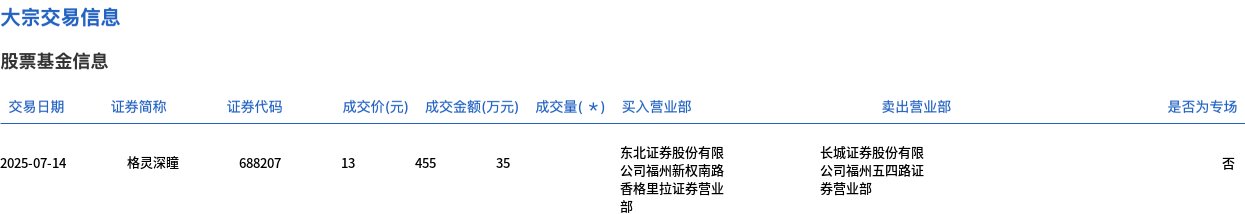 格灵深瞳今日大宗交易折价成交35万股,成交额455万元