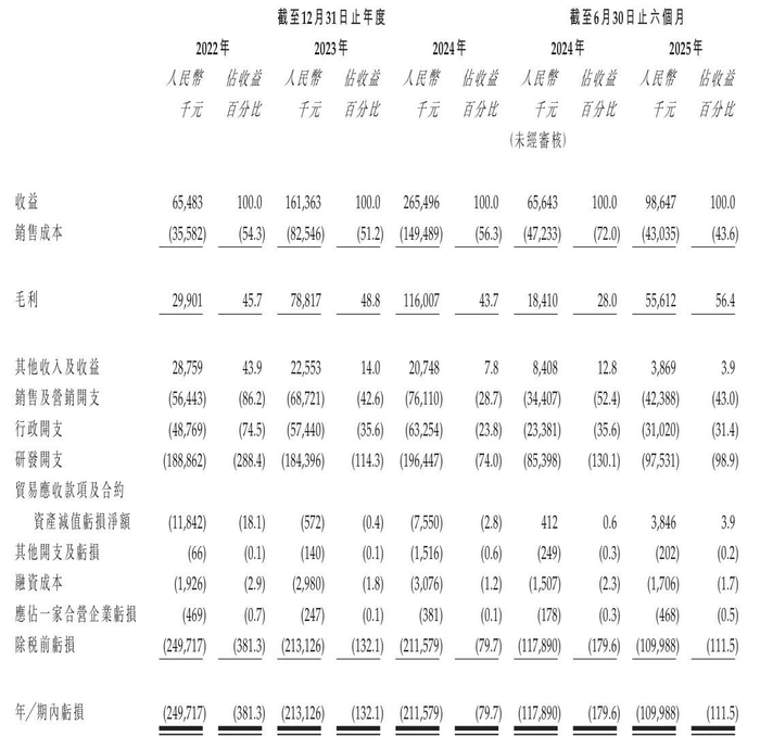 驭势科技2025年上半年营收为9865万元,毛利为5561万元,期内亏损为1.1亿元。