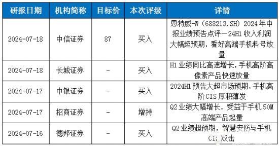 思特威近一个月获得5份券商研报关注。研报详细数据如下表所示: