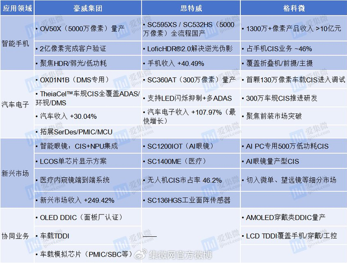 豪威的OLED DDIC、车载TDDI,格科微的AMOLED驱动芯片,将受益于显示面板技术升级与汽车多屏化趋势;模拟芯片领域,车载PMIC、SerDes、高边开关等产品需求增长,豪威与格科微的模拟业务将成为新增长曲线,与CIS业务形成协同效应。