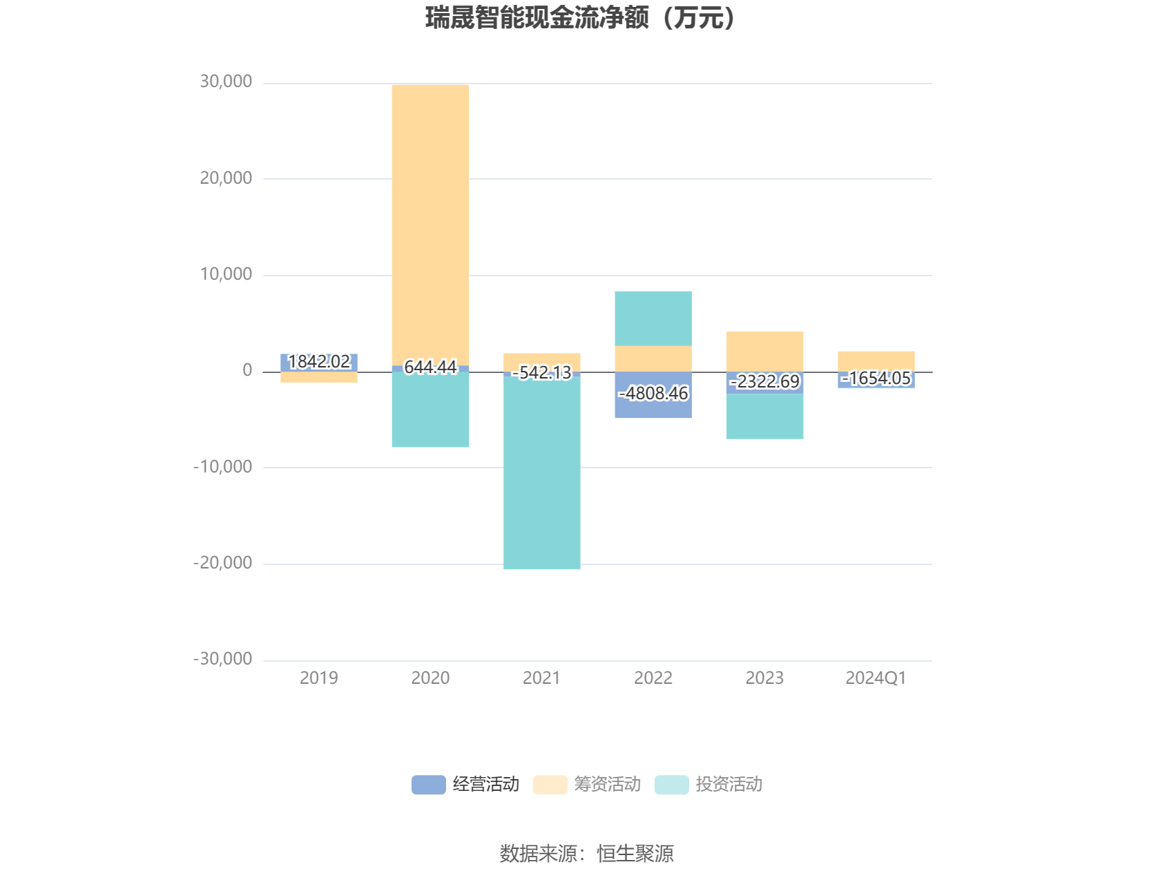 2024年第一季度,公司经营活动现金流净额为-1654.05万元,同比减少1621.13万元,主要系公司同期销售收款金额较上年减少所致;筹资活动现金流净额2107.36万元,同比增加1638.57万元;投资活动现金流净额-66.31万元,上年同期为-737.55万元。