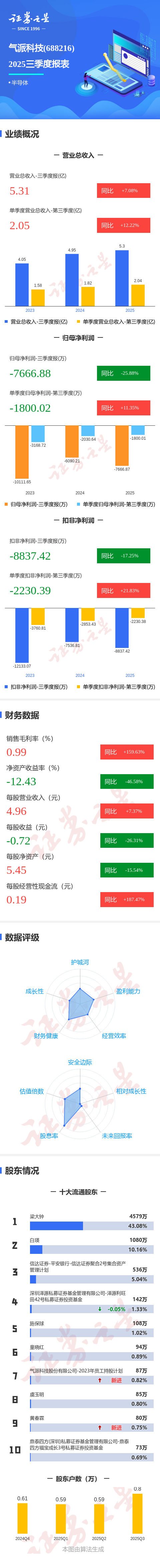 图解气派科技三季报:第三季度单季净利润同比增长11.36%