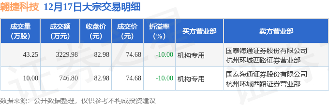 12月17日翱捷科技现2笔折价10%的大宗交易 合计成交3976.78万元