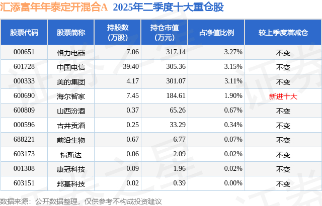 汇添富年年泰定开混合A的前十大重仓股如下: