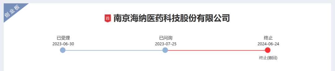 回顾海纳医药的创业板IPO历程。公司于2023年6月IPO获受理,2023年7月接受首轮问询,2024年6月撤单。在撤单前,深交所已发出第2轮审核问询函。