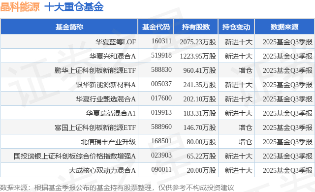 根据2025基金Q3季报公募基金重仓股数据,重仓该股的公募基金共12家,其中持有数量最多的公募基金为华夏基金的华夏蓝筹LOF。华夏蓝筹LOF目前规模为19.54亿元,最新净值1.629(11月20日),较上一交易日下跌2.1%,近一年上涨8.89%。该公募基金现任基金经理为李彦。李彦在任的基金产品包括:华夏兴和混合A,管理时间为2020年6月12日至今,期间收益率为104.72%;华夏行业甄选混合A,管理时间为2023年3月28日至今,期间收益率为31.55%;华夏瑞益混合A1,管理时间为2023年12月4日至今,期间收益率为72.33%。
