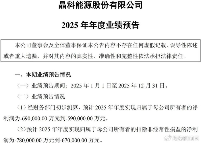 晶科能源2025年预亏
