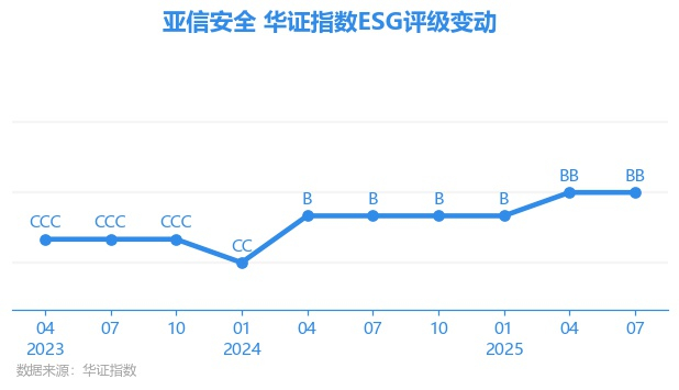 日前,华证指数公布了新一期(2025年7月31日)的ESG评级结果,亚信安全(688225.SH)获得BB评级(华证指数评级为C起至AAA九档,C为最低档,AAA为其最高一级评级/AA为其第二档),上一期(2025年4月30日)ESG评级为BB。本期ESG评级在156家软件行业A股上市公司中排名第54(上一期排名第51)。