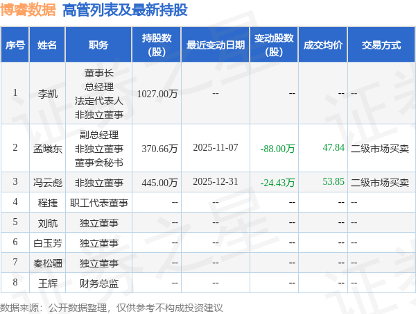 博睿数据近半年内的董监高及核心技术人员增减持详情如下: