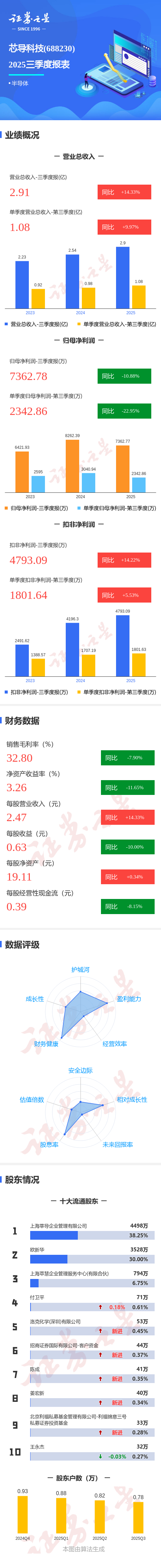 图解芯导科技三季报:第三季度单季净利润同比下降22.96%