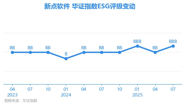 日前,华证指数公布了新一期(2025年7月31日)的ESG评级结果,新点软件(688232.SH)获得BBB评级(华证指数评级为C起至AAA九档,C为最低档,AAA为其最高一级评级/AA为其第二档),上一期(2025年4月30日)ESG评级为BB。本期ESG评级在156家软件行业A股上市公司中排名第31(上一期排名第31)。