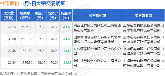 1月7日神工股份现4笔折价14.63%的大宗交易 合计成交8702.4万元