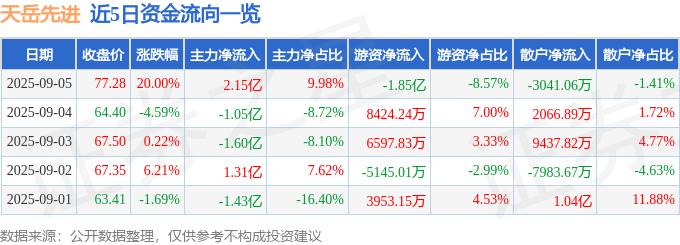 9月5日的资金流向数据方面,主力资金净流入2.15亿元,占总成交额9.98%,游资资金净流出1.85亿元,占总成交额8.57%,散户资金净流出3041.06万元,占总成交额1.41%。