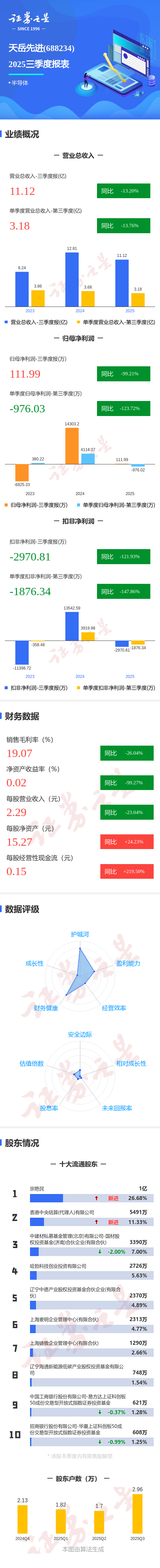 图解天岳先进三季报:第三季度单季净利润同比下降123.72%
