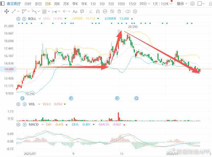 值得一提的是,春立医疗在去年10月31日收涨14.04%,单日成交量达到2053.79万股,换手率达到21.59%,说明前期主力资金开始在拉升过程中获利离场。