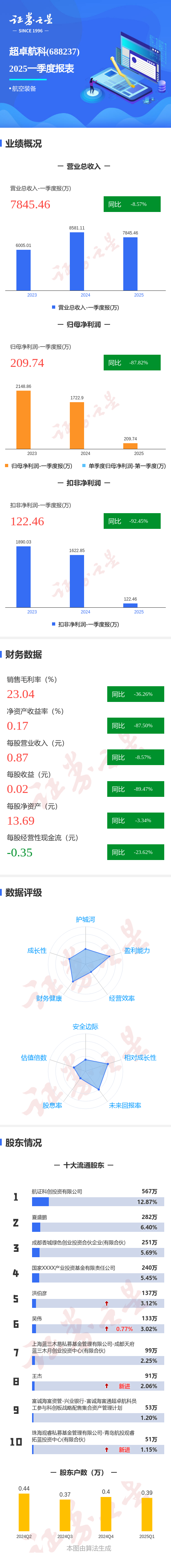 图解超卓航科一季报:第一季度单季净利润同比减87.83%