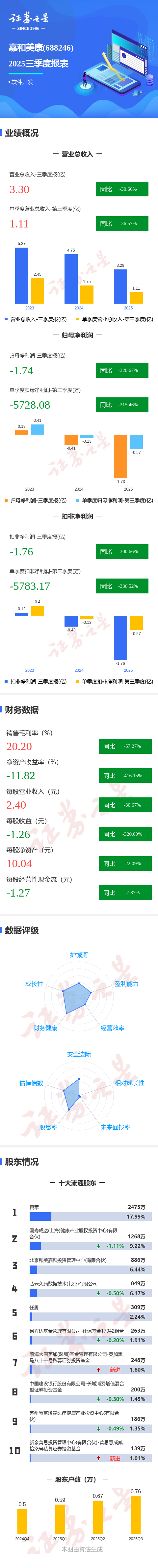 图解嘉和美康三季报:第三季度单季净利润同比下降315.46%