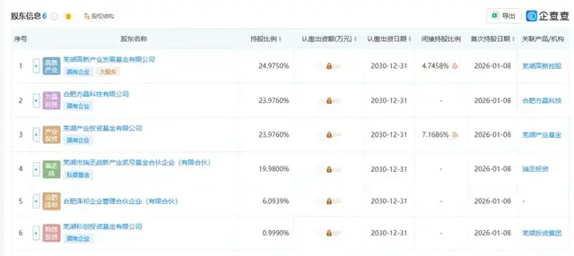企查查APP显示,近日,安徽瑞晶半导体有限公司成立,注册资本约5亿元,经营范围包含半导体分立器件制造;半导体照明器件制造;集成电路制造;集成电路芯片及产品制造等。企查查股权穿透显示,该公司由晶合集成持股企业合肥方晶科技有限公司、芜湖高新产业发展基金有限公司等共同持股。