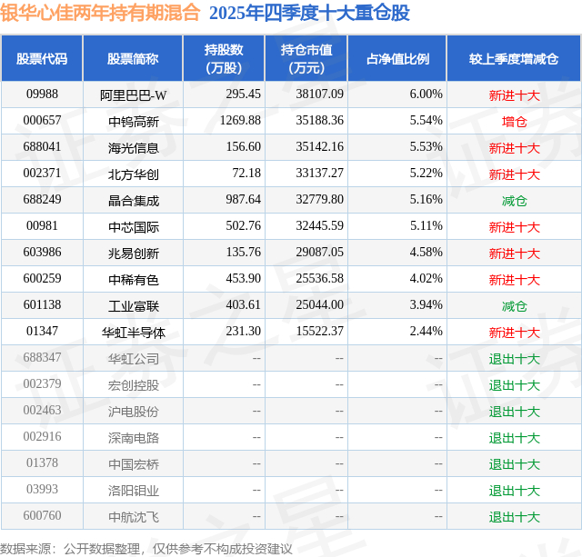 根据2025基金年报公募基金重仓股数据,重仓该股的公募基金共40家,其中持有数量最多的公募基金为银华基金的银华心佳两年持有期混合。银华心佳两年持有期混合目前规模为63.54亿元,最新净值1.1278(3月4日),较上一交易日下跌0.55%,近一年上涨76.52%。该公募基金现任基金经理为李晓星 张腾 杜宇。张腾在任的基金产品包括:银华瑞和灵活配置混合A,管理时间为2024年3月7日至今,期间收益率为114.94%;银华甄选价值成长混合A,管理时间为2024年8月7日至今,期间收益率为87.27%;银华甄选价值回报混合A,管理时间为2025年9月18日至今,期间收益率为14.39%。李晓星在任的基金产品包括:银华中小盘混合,管理时间为2015年7月7日至今,期间收益率为279.95%;银华盛世精选灵活配置混合发起式A,管理时间为2016年12月22日至今,期间收益率为114.74%;银华心诚灵活配置混合A,管理时间为2018年3月12日至今,期间收益率为68.63%;银华心怡灵活配置混合A,管理时间为2018年7月5日至今,期间收益率为205.74%。杜宇在任的基金产品包括:银华中小盘混合,管理时间为2019年12月11日至今,期间收益率为100.85%;银华丰享一年持有期混合,管理时间为2022年1月26日至今,期间收益率为14.95%;银华心质混合A,管理时间为2023年3月30日至今,期间收益率为34.57%;