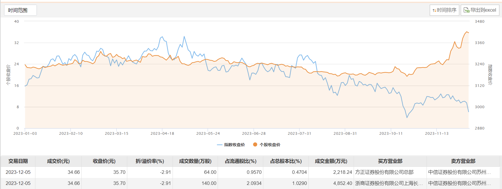今日大宗交易成交204万股,成交额7070.64万元,占当日总成交额的31.65%,成交价34.66元,较市场收盘价折价2.91%。