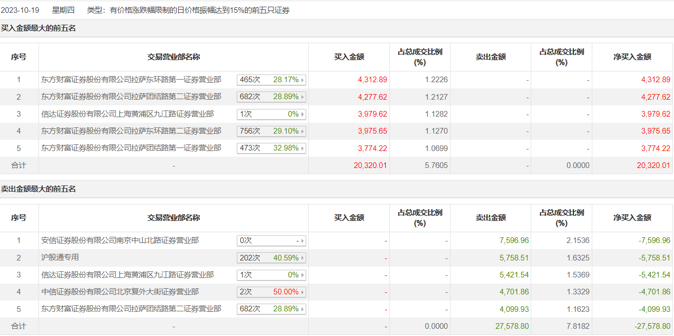 10月19日20CM涨停,成交额28.88亿元,换手率7.87%,盘后龙虎榜数据显示,沪股通专用席位买入2.61亿元并卖出1.86亿元,小鳄鱼席位净买入1.02亿元。