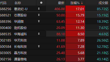chiplet概念震荡走高 寒武纪-U涨超17%