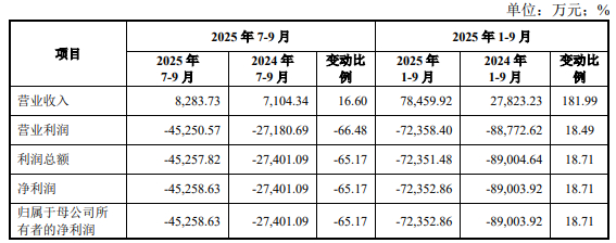 2025年前三季度,摩尔线程营业收入为78,459.92万元,净利润/归属于母公司所有者的净利润为-72,352.86万元,扣除非经常性损益后归属于母公司所有者的净利润为-78,636.37万元,经营活动产生的现金流量净额为-149,953.99万元。