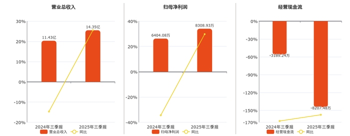 凯立新材(688269.SH):2025年三季报净利润为8308.93万元、同比较去年同期上涨29.74%