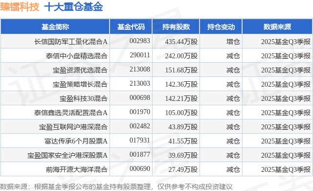 重仓臻镭科技的前十大公募基金请见下表: