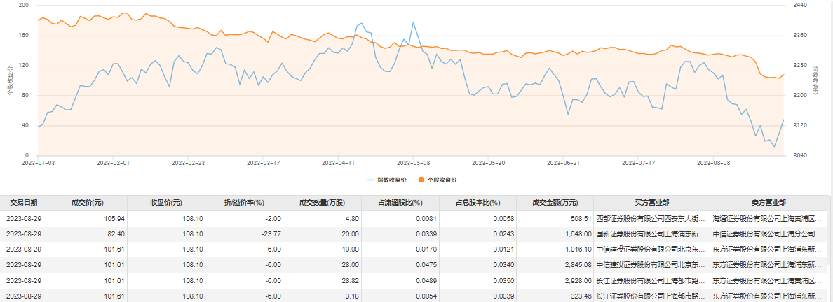 联影医疗8月29日大宗交易成交94.8万股,成交额9269.21万元,占当日总成交额的12.89%,成交均价97.78元,较市场收盘价108.1元折价9.55%,其中最高成交价105.94元,最低成交价82.4元。