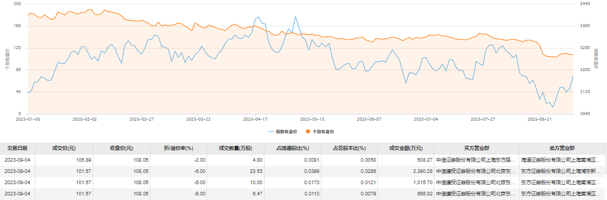 联影医疗9月4日大宗交易成交44.8万股,成交额4571.07万元,占当日总成交额的12.12%,成交均价102.03元,较市场收盘价108.05元折价5.57%,其中最高成交价105.89元,最低成交价101.57元。