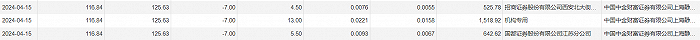 4月15日大宗交易成交263万股,成交额3.07亿元,占当日总成交额的51.68%,成交价116.84元,较市场收盘价125.63元折价7.0%。
