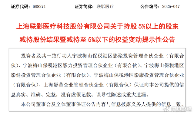 这就意味着,联影医疗员工持股平台后续减持,不再需要预披露以及进展公告。