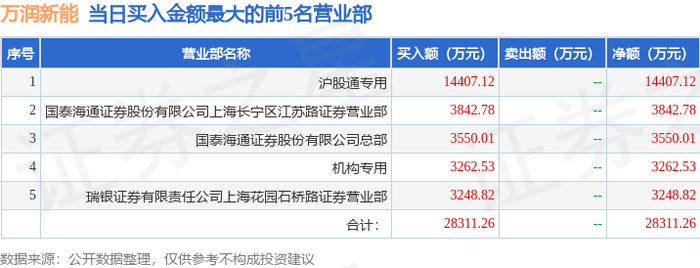 11月28日万润新能(688275)龙虎榜数据:游资章盟主上榜