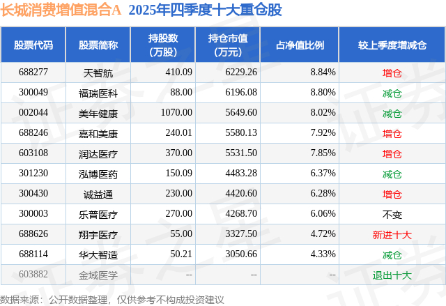 长城消费增值混合A的前十大重仓股如下: