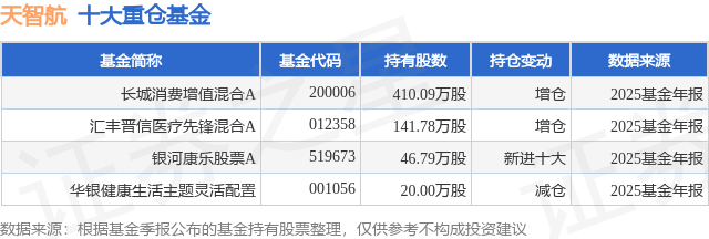 重仓天智航的公募基金请见下表: