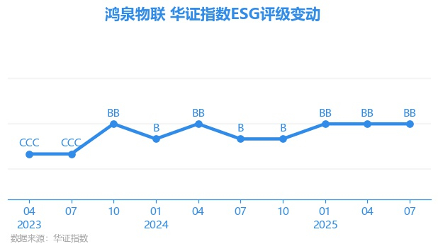 日前,华证指数公布了新一期(2025年7月31日)的ESG评级结果,鸿泉物联(688288.SH)获得BB评级(华证指数评级为C起至AAA九档,C为最低档,AAA为其最高一级评级/AA为其第二档),上一期(2025年4月30日)ESG评级为BB。本期ESG评级在156家软件行业A股上市公司中排名第52(上一期排名第60)。