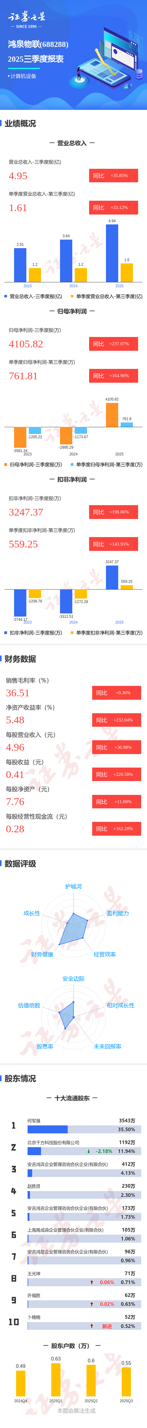 图解鸿泉物联三季报:第三季度单季净利润同比增长164.91%