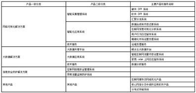 公司主要产品包括网络可视化系统、网络安全产品、大数据分析产品等,主要产品及服务具体情况如下: