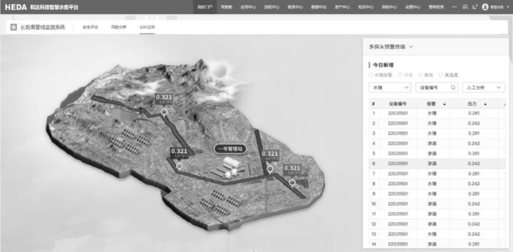 长距离原水管道监测系统结合多探头预警终端,采用物联网和大数据技术,打造集实时在线监测、水锤预警、爆管定位、漏损管控和管线风险评估于一体的管网安全在线监测系统,实现对管道的瞬变压力、爆管和渗漏的一体化监控,为管道安全运行、故障分析、安全评估、优化调度、管道控漏、预案制定等方面提供多方面的技术支持,为生产运营提供安全保证的数据支撑,为自动化智能管理系统提供可靠的科学依据,满足长距离原水管道多层级、多维度和多业务的管理应用需求,从而提升供水管线的运行安全。