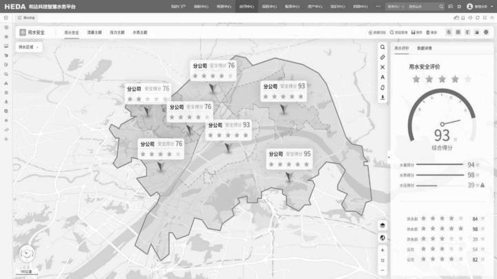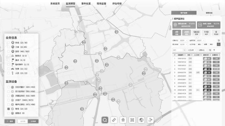 基于分区计量,以准确的管网拓扑结构为基础,将供水管网划分为若干个单独的计量单元,建立起一个分区分级水量分析体系,实时掌握管网水量变化规律与趋势,及时发现管网运行中存在的安全隐患与漏水点,达到提高管网运行安全与降低漏损的目的。