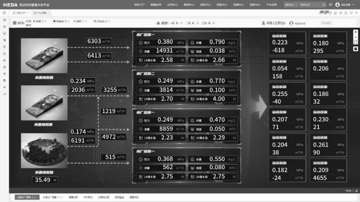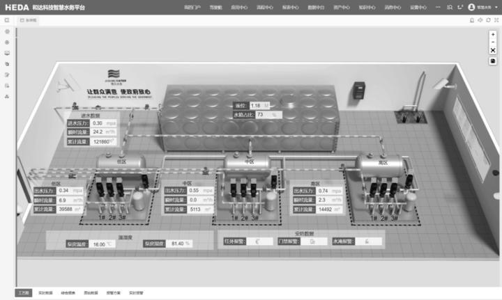 利用物联网感知、智能控制、虚拟现实、AI算法等技术,实现二次供水泵房全方位、多角度、高效率运营管理,构建运营总览、业务领域、专题分析等功能板块,提升数字管理效益。通过城市二次加压泵房的中央集中监控、无人巡检、自动报警、能耗分析等方式,缩短二次供水泵房的维护管理响应时间,降低二次供水泵房的设备故障率,有效降低管理运营成本,提高企业对二次供水泵房管理水平,更好地保证居民供水的“最后一公里”的用水质与量。