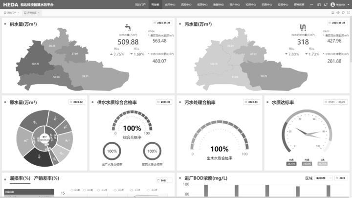 通过水务可视化分析平台可以快速整合水务数据,通过无需懂代码和搭积木模式,快速、高效的构建出酷炫的大屏端展示应用、APP端展示应用、WEB端展示应用、KPI及驾驶舱等综合性展示应用,快速支撑业务变化,随需而动,实现低门槛、低成本和高质量交付。