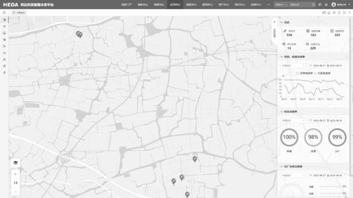针对城市排水公司日常管理工作,让排水网络管理调度人员实时了解排水体系运行现状、监测点位实时数据、设备及设施的运行状态等,综合考虑各方面因素进行排水体系的整体调度,保障排水单位和设施的安全,保障城市路面安全,合理分配污水处理产能,节能增效,平衡生产负荷,管控水体污染风险等。管理排水户在排水管理或者综合执法管理单位的信息备案流程及完整的台账信息,完成排水户的尾水排放监管。