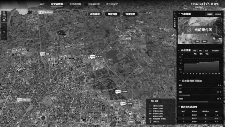 水灾害防御模型破解预报预警不智能、风险识别不精准、工程调度不协同等难题,提升水灾害防御能力。水灾害防御聚焦水网多目标调度,围绕水灾害防御调度需求,进行预报预警洪水,精准识别风险,统筹流域和区域防洪排涝,指导城防和圩区有序排涝,发挥水网运行整体效能,增强水网安全韧性和防御超标洪水能力。整合各部门(气象、水利、测绘、住建、应急、生态环境等)、流域机构区的水灾害相关监测、告警、预报、预警数据和处置状态信息,提炼防洪除涝“监测、预报、预警、指挥、抢险、反馈”六大环节信息,形成防汛防台响应等级、监测类、预报类和灾情处置大调度场景。