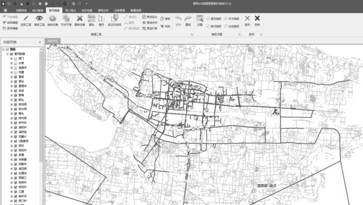 基于CS架构设计,为管网数据管理提供从数据入库、数据组织到数据发布应用等一系列过程的统一操作方式和入口。系统具备数据导入、属性录入、数据编辑、空间拓扑构建、专题图制作等功能,并通过流程化的数据录入方式和权限控制等体系,实现管网数据的快速和安全更新,从而保证数据的完整性和准确性。