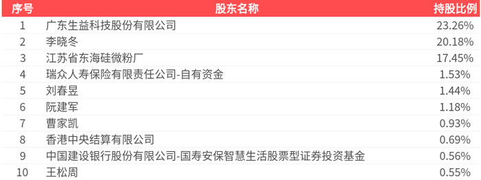 公司股东户数为1.10万户,前十大股东持股数量为1.64亿股,占总股本比例为67.77%,前十大股东持股情况如下: