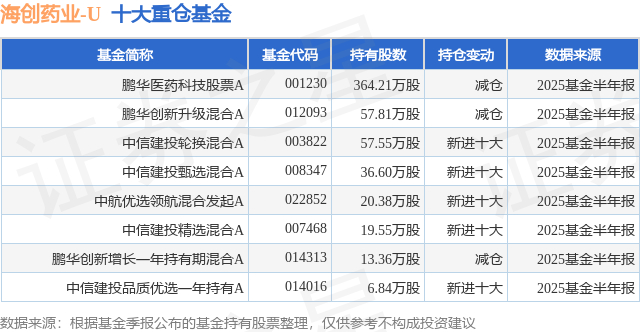 重仓海创药业-U的公募基金请见下表: