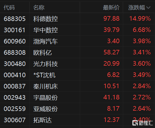 格隆汇4月27日丨科德数控大涨14%,华中数控涨近7%,科力尔、秦川机床、拓斯达等跟涨。
