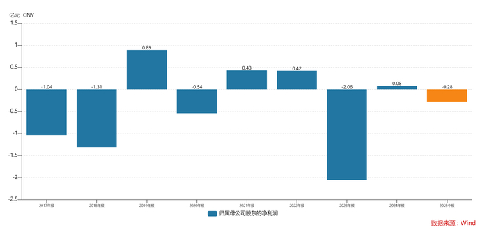 但股价的狂欢,却与公司惨淡的盈利状况严重背离。具体来看,上市次年(2023年),均普智能就爆出2.06亿元的巨亏;2024年虽然归母净利润扭亏,但扣非后净利润仍亏损0.16亿元,主营业务盈利能力未见好转;2025年上半年,公司营收与净利润双双下滑,净利润亏损进一步扩大至0.28亿元。连续两年半扣非净利亏损的表现,暴露其主营业务“造血能力”的严重不足。